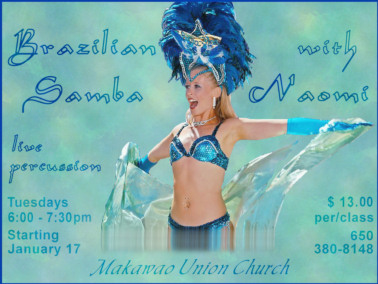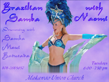 Brazilian Samba Flyer #3 : January 2006 A second location was added to the class schedule where a live percussion band would be accompianing the dancers. The layout and information was adjusted. |